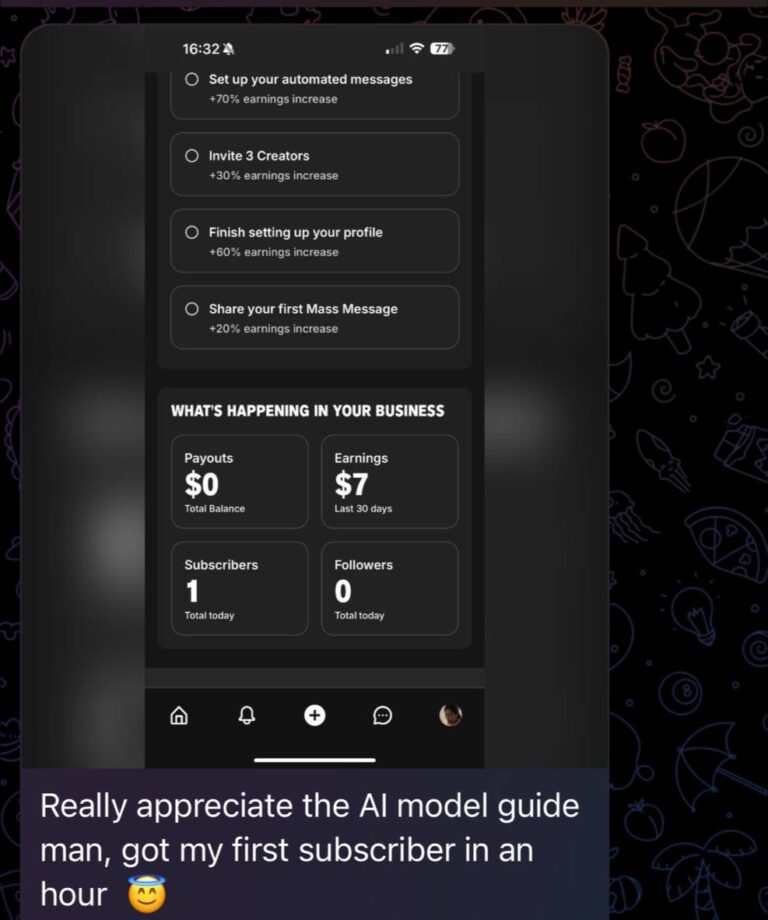 AI model management is same as the normal OnlyFans management business. However with AI model management you get number of benifits which you don’t get through normal OnlyFans management business. In classic OFM, you have to look for models who are pretty, deliver content every day, and speak good English. In addition, with classic OFM, the manager does not get 100%, but rather 50/50, which is of course a much smaller profit margin.